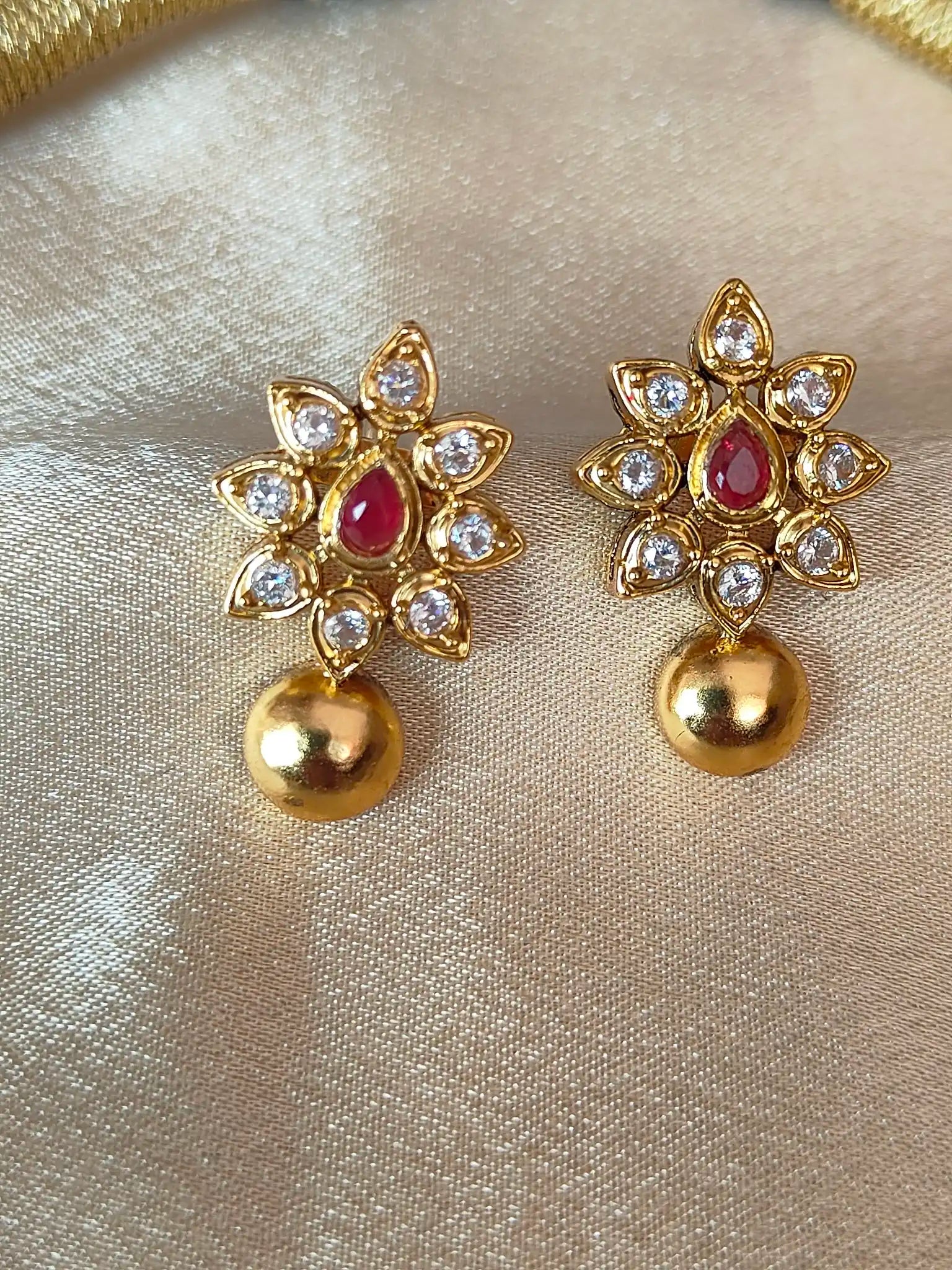 A charming black thread necklace with kemp-style floral motifs and golden beads, paired with matching studs. Perfect for a traditional and elegant look.